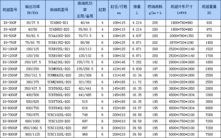 1、采用玉柴生產的YC6M320D大功率柴油機作動力,選配無錫新時代產斯坦福電機或意大利進口電機馬卡地、迅高等